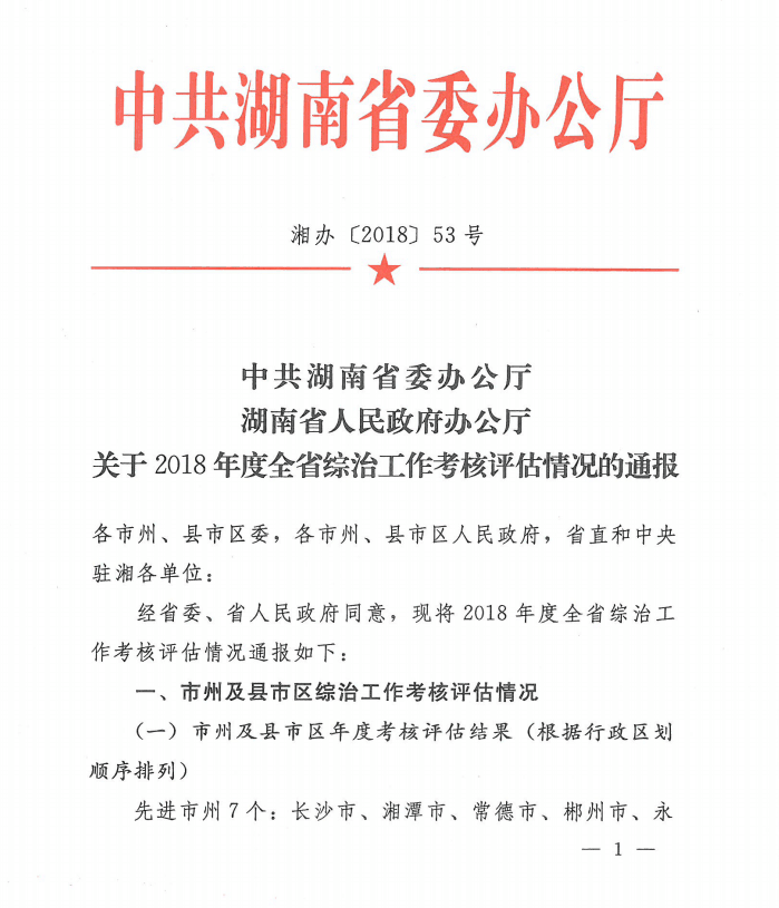 12月26日,省委经济工作会议在长沙召开,会议通报了2018年度全省综治工作考核评估情况。365英国上市在省直和中央驻湘单位综治工作考核评估中获评先进。湖南省社会管理综合治理“先进单位”是湖南省委、省政府对省直和部属在湘高校社会管理综合治理考评的最高奖励。