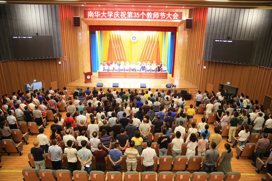 大会在庄严的国歌声中拉开序幕。张灼华代表学校向辛勤耕耘、默默奉献的广大教师们、附属医院的教学工作人员和离退休教职工致以节日的祝贺和亲切的问候。