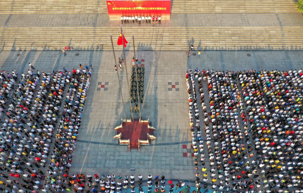 10月1日清晨,我校8000余名师生分别在红湘校区南华广场和雨母校区田径运动场隆重集会,举行以“不忘初心、牢记使命”为主题的升国旗仪式,热烈庆祝新中国成立70周年。在红湘校区南华广场,校党委书记高山出席升国旗仪式并讲话,副校长何旭娟主持升国旗仪式。全体在校校领导、副处级以上干部参加仪式。