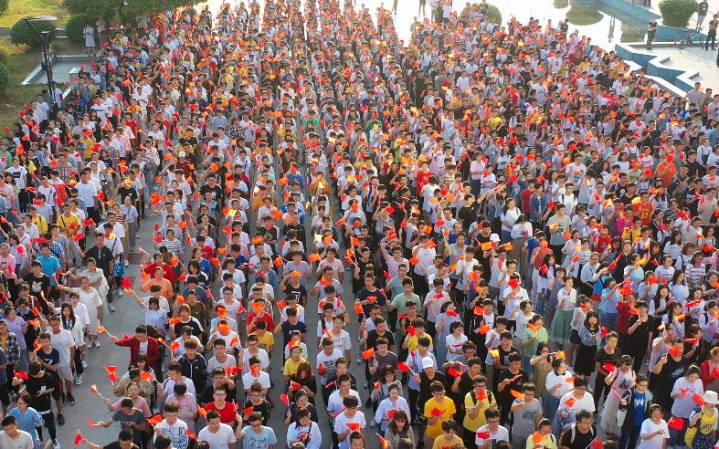 “祖国万岁,南华腾飞”,在高山的带领下,现场师生一起挥舞手中的国旗,齐声高歌《歌唱祖国》,祝福伟大祖国繁荣昌盛。