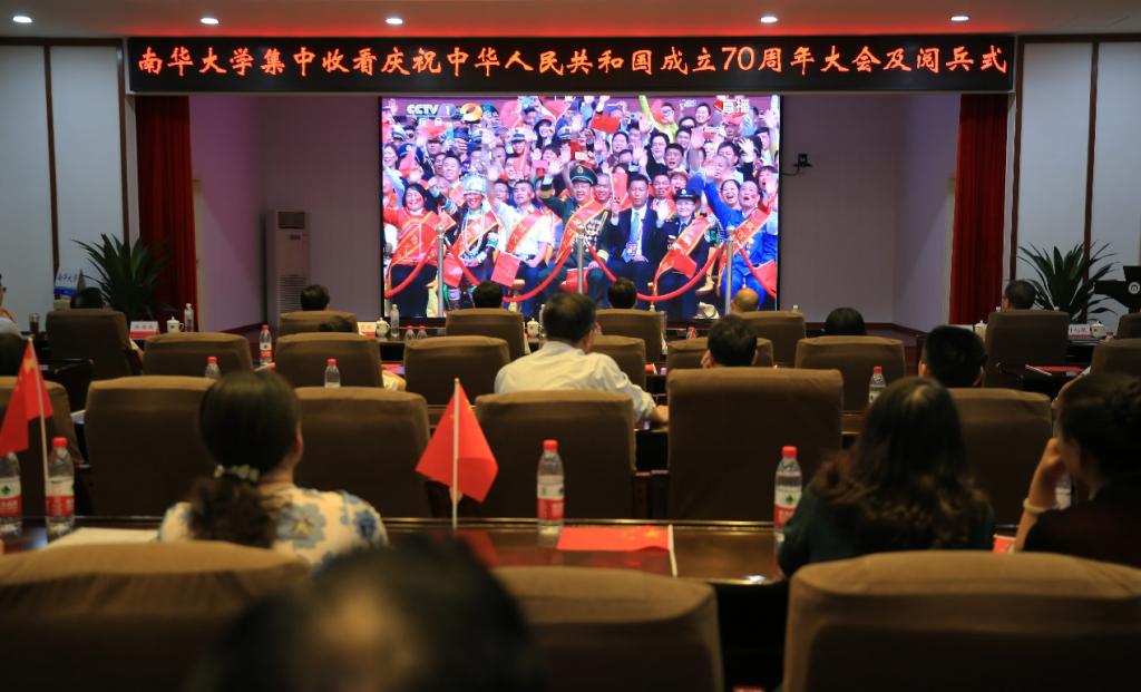 上午9时,全体在校校领导、各职能部门负责人及师生代表来到学校行政办公楼视频会议室集体观看了庆祝新中国成立70周年大会、阅兵式及群众游行。全校各二级单位党委(党总支)纷纷组织本单位教职员工收看大会、阅兵式及群众游行盛况。