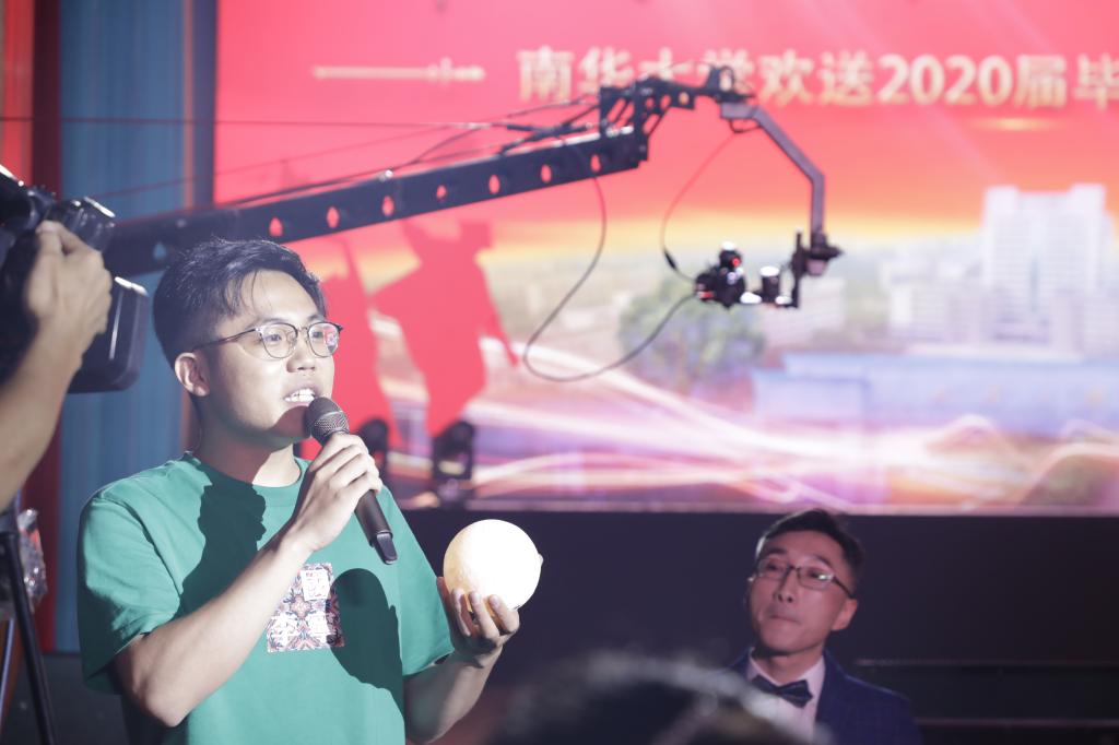 全国向上向善好青年、2020届毕业生王玉锋和优秀创新创业毕业生代表尹同录在晚会上代表广大毕业生表达了对母校悉心栽培的诚挚感谢,尹同录向高山书记赠送了自制的3D打印月光灯,以表达对学校教师的感恩之情。晚会期间,来自各学院的广大学生通过VCR向2020届毕业生表达了最诚挚的祝福,线上观看的学生们也通过网络云端向2020届毕业生送上了祝福。