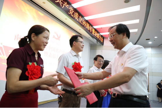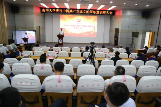 为热烈庆祝党的99周年华诞,缅怀党的光荣历史,讴歌党的光辉业绩,继承和发扬党的光荣传统和优良作风,6月30日,学校召开庆祝中国共产党成立99周年暨表彰大会。大会采取线上线下结合方式,设一个主会场和56个分会场。在主会场,校党委书记高山出席并讲话,校党委副书记阳小华主持大会。