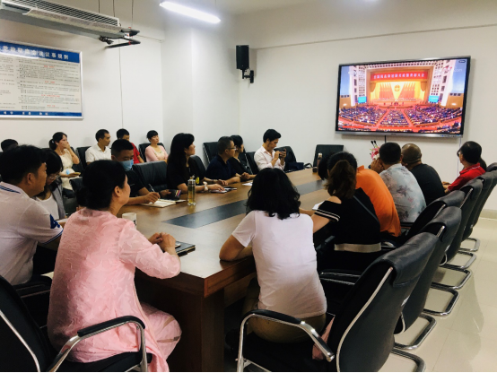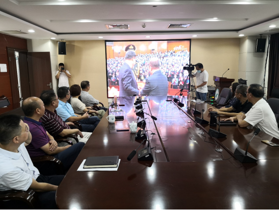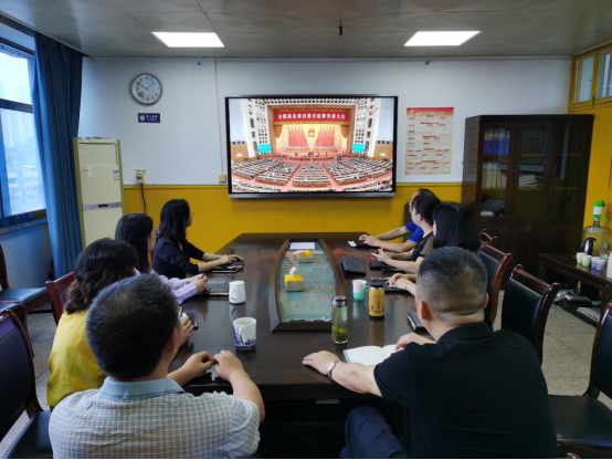 学校领导班子和职能部门主要负责人集中收看现场