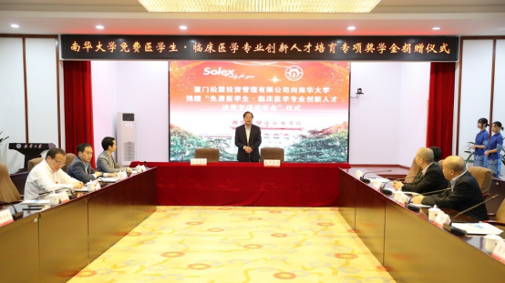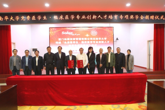 松霖家居有限公司副总经理唐擎峰、总监曾学杰,松霖科技股份有限公司人力资源部经理肖明、董事长秘书谢静;校党委委员、副校长雷小勇,校友总会会长赵红,党委委员、宣传部部长刘文君,党政办、财务处、校友办、学工部等相关职能部门负责人,衡阳医学院师生代表参加捐赠签约仪式。