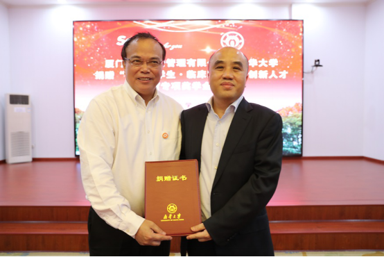 随后,张灼华与周华松签订捐赠协议,周华松向母校捐赠1000万元人民币设立“365英国上市免费医学生·临床医学专业创新人才培育专项奖学金”,校长张灼华代表学校接受捐赠,并向周华松颁发捐赠证书。