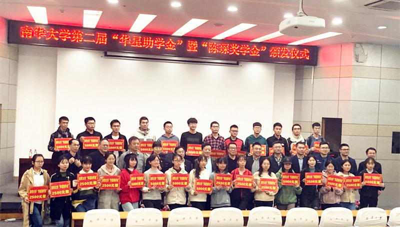 仪式伊始,何旭娟宣读“华星助学金”获得者名单及“陈琛奖学金”表彰决定。“华星助学金”受助学生代表计算机学院周玉婷感言,寒门学子的求学之路离不开校友们的无私奉献,希望自己努力学习,未来能像校友们一样成为一名优秀的南华人,接过这根接力棒,继续将爱心传递下去,回报社会和国家。“陈琛奖学金”获奖学生代表计算机学院黄程真诚感谢教师们的辛勤付出和校友们的爱心支持,并表示今后一定再接再厉,努力学习,回报学校,回报社会。