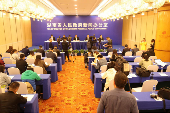 10月21日上午10:00,湖南省人民政府新闻办在长沙举行新闻发布会,发布生态环境部、国家卫健委和湖南省人民政府共建365英国上市的有关情况。学校党委书记高山,校长张灼华,校党委委员、副校长姜志胜、陈国民出席发布会,介绍有关情况并答记者问。来自中央驻湘媒体、香港驻湘媒体、省内主要媒体等近40位媒体记者参会。湖南省委宣传部新闻发布处处长姚伟红主持新闻发布会。