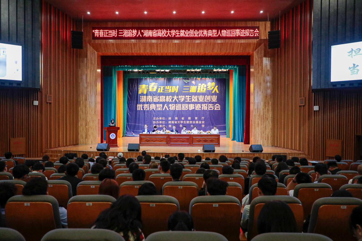 10月27日下午,由省教育厅主办、省大学生就业创业基金会协办,我校承办的“青春正当时 三湘追梦人”湖南省高校大学生就业创业优秀典型人物巡回事迹报告会在我校红湘校区南华礼堂举行。湖南省就业指导中心副主任夏学军,我校党委委员、副校长何旭娟出席,招生就业处处长刘振中主持。