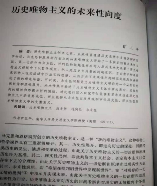 旷三平教授的文章《历史唯物主义的未来性向度》总计18个版面,全面深入论述了历史唯物主义的未来性向度问题。文章刊发后,在我国哲学研究领域产生了强烈反响,扩展了我校人文社科研究在全国的影响力。