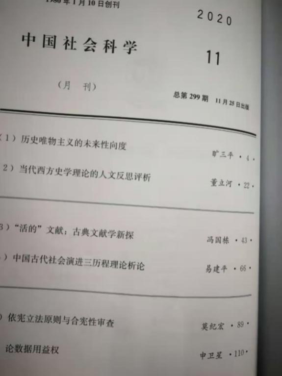 近日,《中国社会科学》2020年第11期首篇刊发我校旷三平教授重磅学术成果《历史唯物主义的未来性向度》。《中国社会科学》在中国社会科学评价研究院发布的《中国人文社会科学期刊AMI综合评价报告(2018年)》中,排名综合性人文社科期刊第一,是该领域唯一顶级学术期刊。这是我校教师首次在该刊发表学术论文,标志着我校人文社科研究登上新台阶。