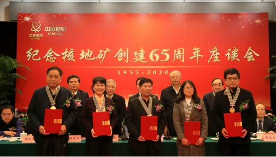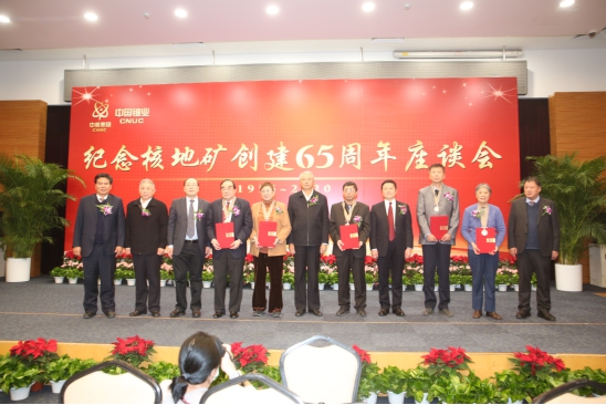 12月11日,由中国铀业公司主办的纪念核地矿创建65周年座谈会在北京会议中心隆重举行,会议总结回顾了我国核地矿事业65年来取得的历史成就和宝贵经验,向作出杰出贡献的核地矿功勋模范人物致敬。