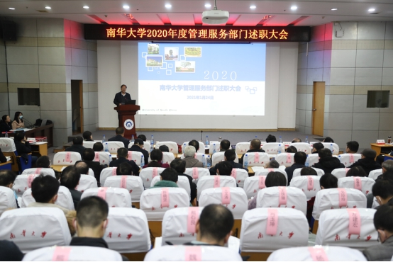 1月24日下午,我校2020年度管理服务部门述职大会在红湘校区图书馆学术报告厅举行。校党委书记高山出席并作总结讲话,校党委副书记阳小华主持会议。