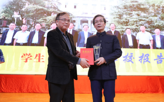 张灼华为陈国强院士颁发杰出校友荣誉证书