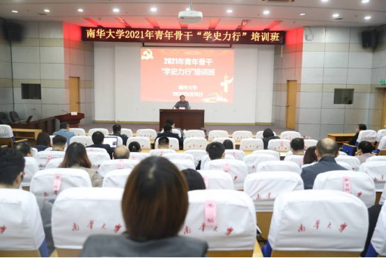 5月23日下午,校长张灼华在红湘校区图书馆学术报告厅为学校2021年青年骨干“学史力行”培训班学员作专题报告,提出“南华之问”——学校有什么要改革的吗?我们的工作可不可以创新?引人深思。报告会由校党委副书记阳小华主持。