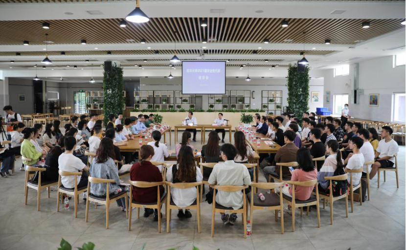 党政办,学工部,研工部,招生处/就业指导中心,教务部,校团委,校友办等相关职能部门负责人及60名毕业生代表参会。