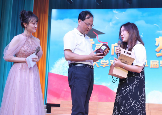 毕业生代表邵溢朵给高山送上祝福母校的毕业礼物