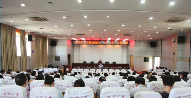 6月25日下午,校长文格波在图书馆一楼学术报告厅为城建学院、外国语学院、校友办、审计处等学院(部门)的全体教职员工作题为“共产党员要做修身的典范”的专题党课。专题党课由外国语学院党委书记王文涛主持。