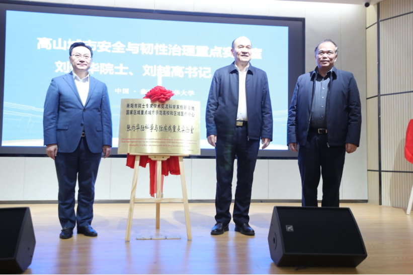 随后,刘仲华、刘越高为张灼华脑科学与脑疾病重点实验室、高山城市安全与韧性治理重点实验室揭牌并与实验室首席科学家合影。