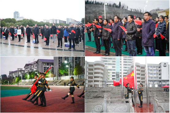 学校有关职能部门负责人,各学院党委书记、副书记、学生辅导员、学生代表一同参加升旗仪式。