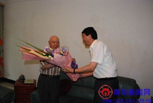 值庆祝中国共产党成立86周年之际,6月30日上午,在我校党委书记邹树梁、校长文格波等的陪同下,衡阳市市委书记徐明华一行来我校看望老红军徐其昌,向他全家致以节日问候,并送上鲜花与慰问金。