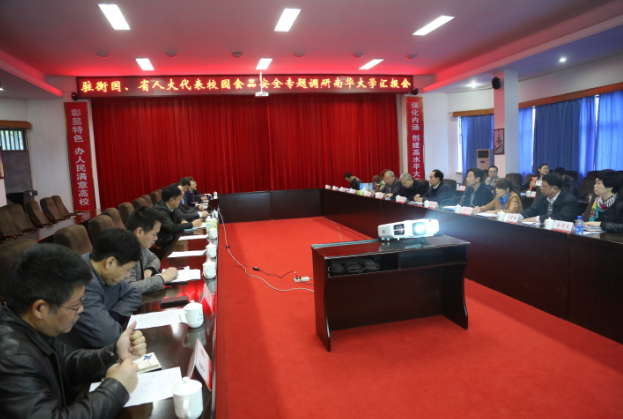 驻衡国、省人大代表在校领导的陪同下察看了学校雨母校区鸟瞰图、学生食堂,红湘校区军工文化教育基地等场所,并对在校学生、食堂炊事员等进行了问卷调查。学校在西苑办公楼视频会议室召开了校园食品安全专题调研汇报会。