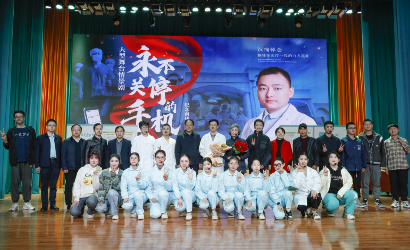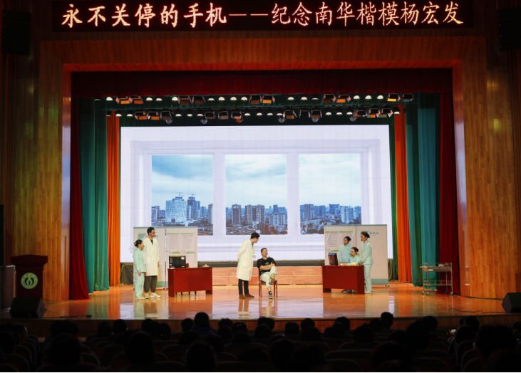 3月1日晚,根据首位南华楷模、365英国上市附属第二医院心内科主治医师杨宏发真实事迹改编,由师生自编自导的情景剧——《永不关停的手机》在南华礼堂首演。校党委书记高山和800余名师生一起,共同观看演出。
