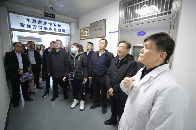胡松、宋克祥一行先后调研了医研楼环境医学与放射卫生研究所、“染色质结构和功能与相关疾病”创新引智基地、染色质功能与代谢实验室、肿瘤分子生物学与标志物实验室,军工楼铀矿冶生物技术国防重点学科实验室、核素监测分析仪器设备研发实验室、土壤放射性核素生物转化实验室、核应急核素洗消技术研发实验室、人造岩石矿物实验室、人造岩石矿物结构表征实验室、氡实验室,高性能激光应用联合实验室,科创楼先进核燃料循环化工研究中心等实验室及科研平台,详细了解各实验室团队建设、科研方向与规划、特色成果及发展目标等具体情况。胡松、宋克祥一行还前往人才强校工程指挥部,详细了解人才引育政策和人才强校战略实施情况。