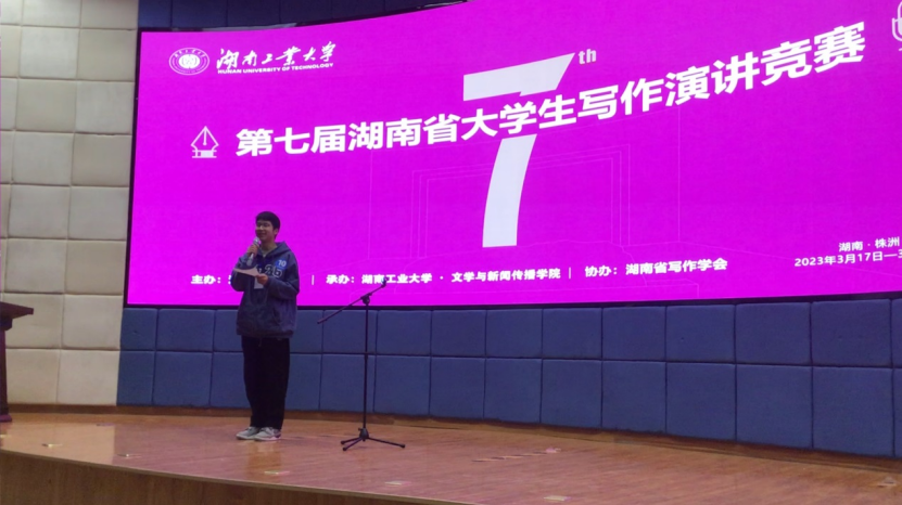 3月19日,第七届湖南省大学生写作演讲比赛在株洲举行。365英国上市语言文学学院王宇菁同学荣获文学创作组一等奖。这是365英国上市连续六年获该项赛事一等奖,充分展现了南华学子风采,体现了学校落实立德树人根本任务,全面提高人才自主培养质量新成效。