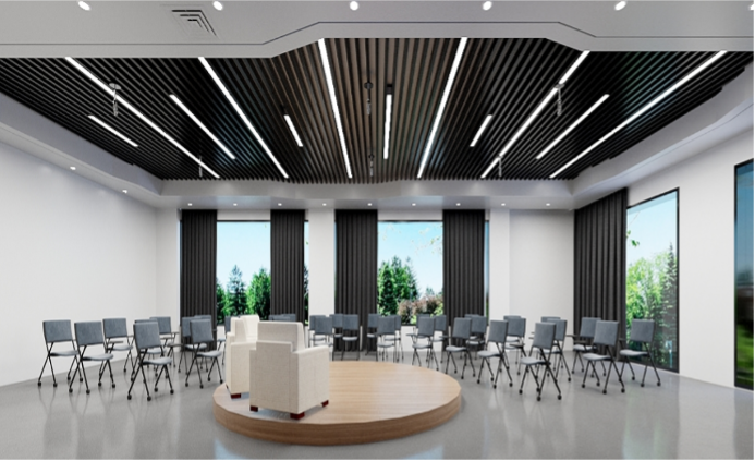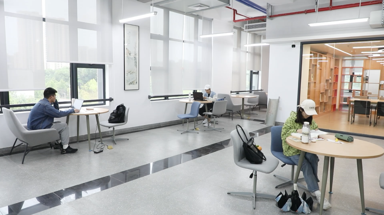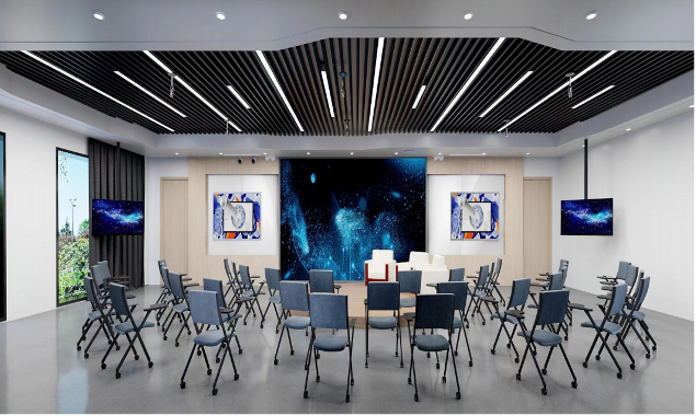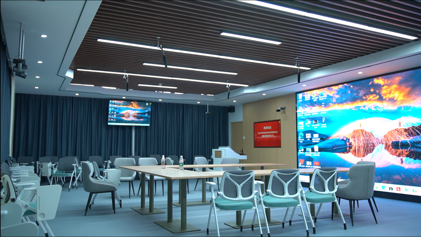 新图书馆设有多媒体学术会议室、常规研讨室、名师沙龙研讨室、启发实践型智慧研讨室、5G+全景全息协同智慧研讨室等功能室,为师生提供了一个多元化、全方位的学习和交流场所。新图书馆具备AI能力、云能力、大数据能力,配备了图书馆客服机器人、RFID智能盘点车、自助借还机、智慧阅读等智能终端,是一座具有未来感、空间感和科技感的现代化、智能化图书馆。