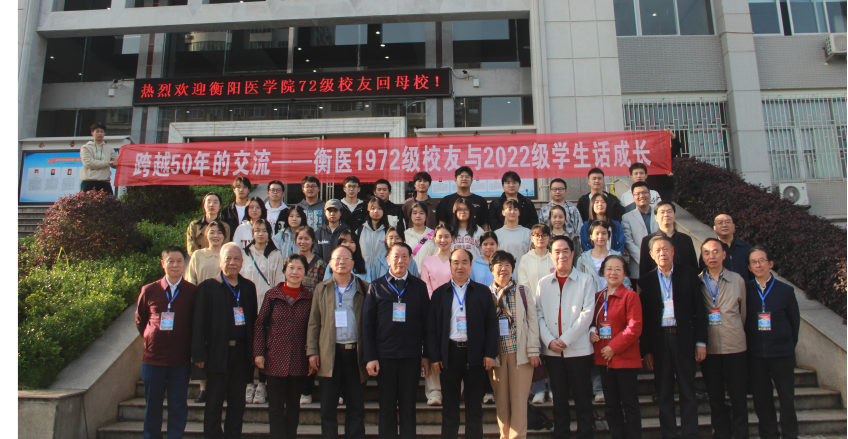 当天,校友们重游红湘校园,并在博学园食堂一起就餐,回忆过往青春岁月,追寻当年记忆。4月26日上午,校友们参观雨母校区,在校史馆、图书馆、教学楼驻足感受学校的改革发展成就,大家沉浸在难得的相聚里,重叙往日的友情,互道别后的思念,尽享重逢的喜悦。26日下午,十一名校友应邀出席“跨越50年的交流----衡医1972级校友与2022级学生话成长”活动,与数十名青年学生深入交流,李斌元、刘凤英、李红、何慕舜、王定龙、陈美科等校友回忆了自己在衡医求学的点点滴滴,分享了自己的成长经历与奋斗历程,他们希望在校学生树牢学医初心,练好基本功,尊师重道,胸怀祖国,放眼世界,传承好“衡医人”的优良传统,走好自己的人生之路。