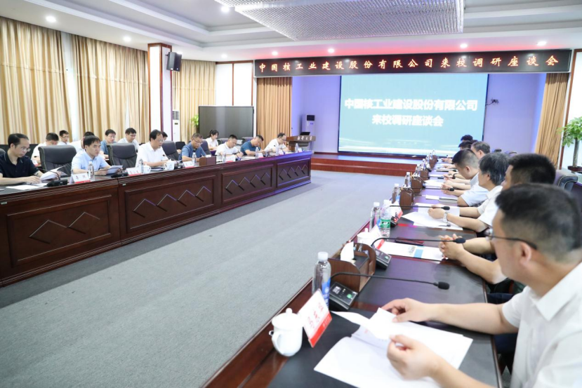 会前,张卫兵一行在雨母校区考察了药植园、图书馆,在红湘校区调研了国家核应急宣传和培训基地、科创楼、激光应用创新研究院。中国核工业华兴建设有限公司、中国核工业第五建设有限公司、中核检修有限公司、中核二十五建设有限公司领导及人力资源部门负责人陪同调研并参加座谈会。学校党政办、学工部、教务部、招就处、财务处、机械工程学院、电气工程学院、核科学技术学院、资源环境与安全工程学院、土木工程学院等部门、学院负责人参加座谈会。