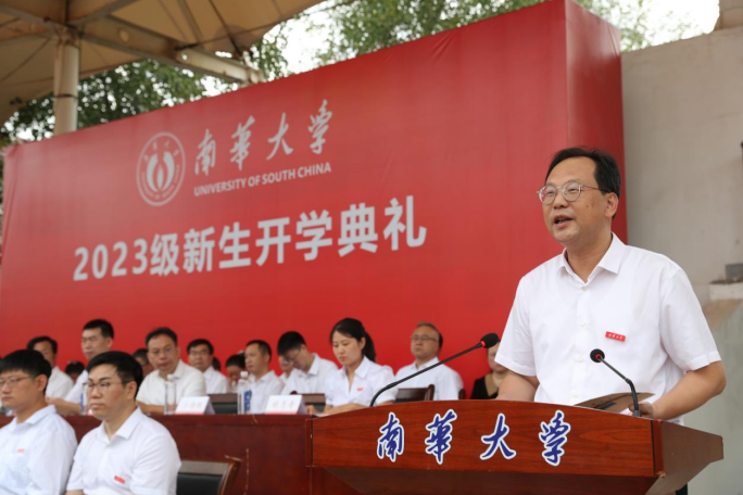 高山代表学校欢迎9756名本科生、2365名研究生加入南华大家庭。“一入南华门,终身南华人”。他寄语全体新生,要胸怀梦想,不断创新,逐梦南华,不负时代,不负华年,创造属于全体南华人的辉煌和荣耀,共同迎接更加光辉灿烂的明天!