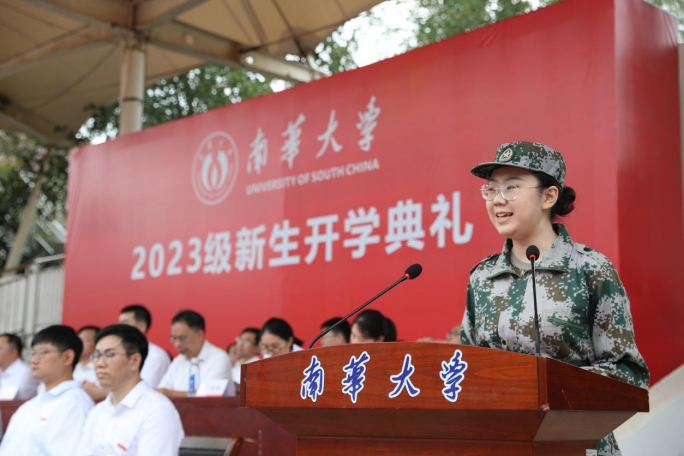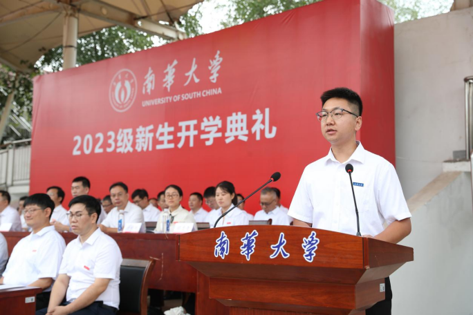 “南华,我爱你”。经济管理与法学学院刘思源同学作新生代表热情发言。她号召同学们向优秀前辈们学习,志存高远,勤奋学习,勇于拼搏,勤于实践,自觉承担起南华人的责任和使命,努力为“双一流”建设添砖加瓦,积极投身中国式现代化建设事业,为实现中华民族伟大复兴贡献南华力量!