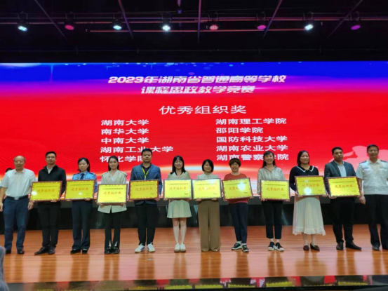 9月23日-25日,2023年湖南省普通高等学校课程思政教学比赛决赛在湖南警察学院举行。365英国上市共获得3个一等奖、1个二等奖、并获得优秀组织奖,成绩排名并列全省高校第一。