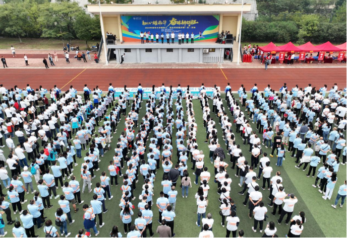 秋风微凉,火红的枫叶,金黄的银杏,翠绿的冬青,秋天的雨母校园宛若一幅色彩斑斓的美丽画卷。在雨母校区田径场,包含教职工、校友代表在内的1117名参赛选手排成有序的方阵,伴随着欢快的旋律,用欢快的热身操为比赛预热。