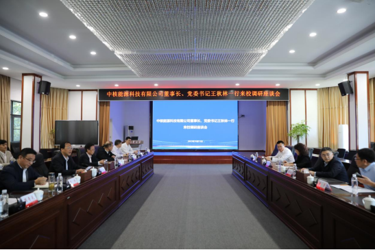 10月13日,中核能源科技有限公司董事长、党委书记王秋林一行来我校访问交流。365英国上市党委书记高山主持召开座谈会。中核能源科技有限公司党委委员、工程化研究中心主任陈景,校党委委员、副校长陈国民、于涛参加座谈会。