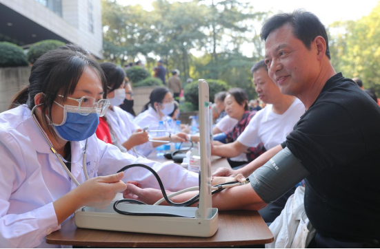 演出前后,来自衡阳医学院的志愿者也来到演出现场为老同志进行健康体检,送上节日的关怀。场外举行的离退休老同志书画、摄影作品展也吸引了众多师生驻足观看。