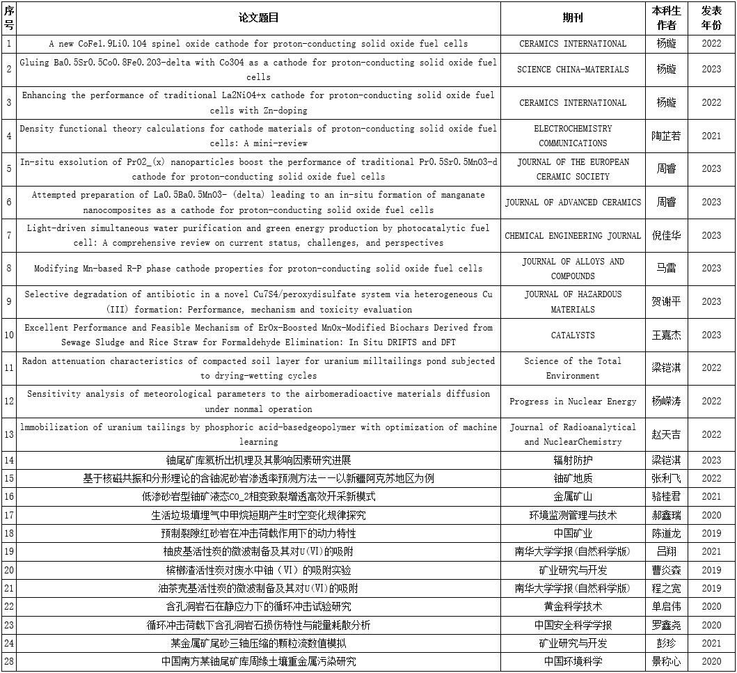 资源环境与安全工程学院近五年本科生发表的科研论文