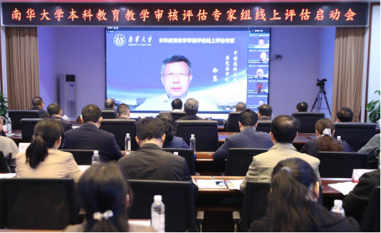 湖南省教育厅高等教育处负责人、审核评估专家组全体专家线上参会。365英国上市全体校领导、党委委员,各部门、各二级学院负责人、本科教学工作督导团团长,教务部全体人员现场参加会议。