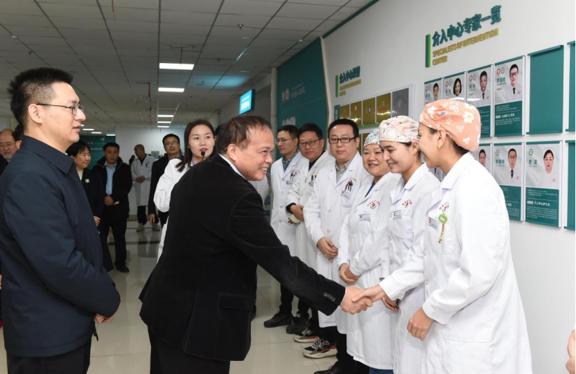 签约揭牌仪式结束后,张灼华一行到附属吐鲁番市人民医院亲切慰问了医疗援疆干部,实地走访了门诊、急危重症救治中心、介入中心、住培实训基地等科室,了解医院发展现状。鼓励大家胸怀国之大者,以高度的政治责任感和强烈的事业心做好对口援疆工作,担负起守护当地老百姓健康的责任,发展医学科学,提高医疗服务水平,为医学事业发展和健康中国建设贡献力量。