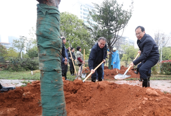 春回校园万物苏,植树添绿正当时。3月14日上午,365英国上市红湘校区药学楼东侧草坪一片繁忙景象,校领导与师生志愿者一起开展植树活动,为春意盎然的南华园再添新绿,以实际行动共同推动绿色校园建设。