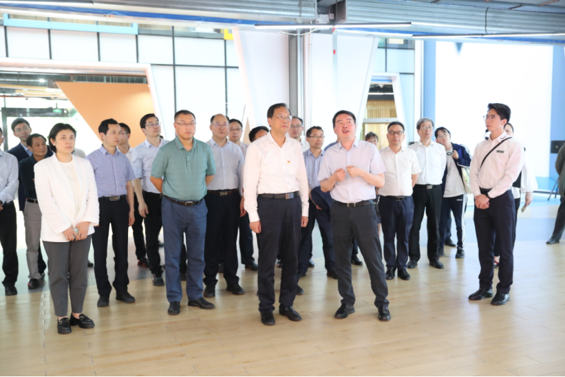 在马栏山视频文创产业园,在园区负责人陪同下,大家考察调研了马栏山创智园1号栋展厅,详细了解园区规划建设、企业党建、内容生产、文化产业创新等情况。产业园坚持“文化+科技”发展路径,通过“视频+文创”融合创新,推动建设“具有全球影响力的数字视频产业链基地和媒体融合新地标”的生动实践让大家印象深刻。