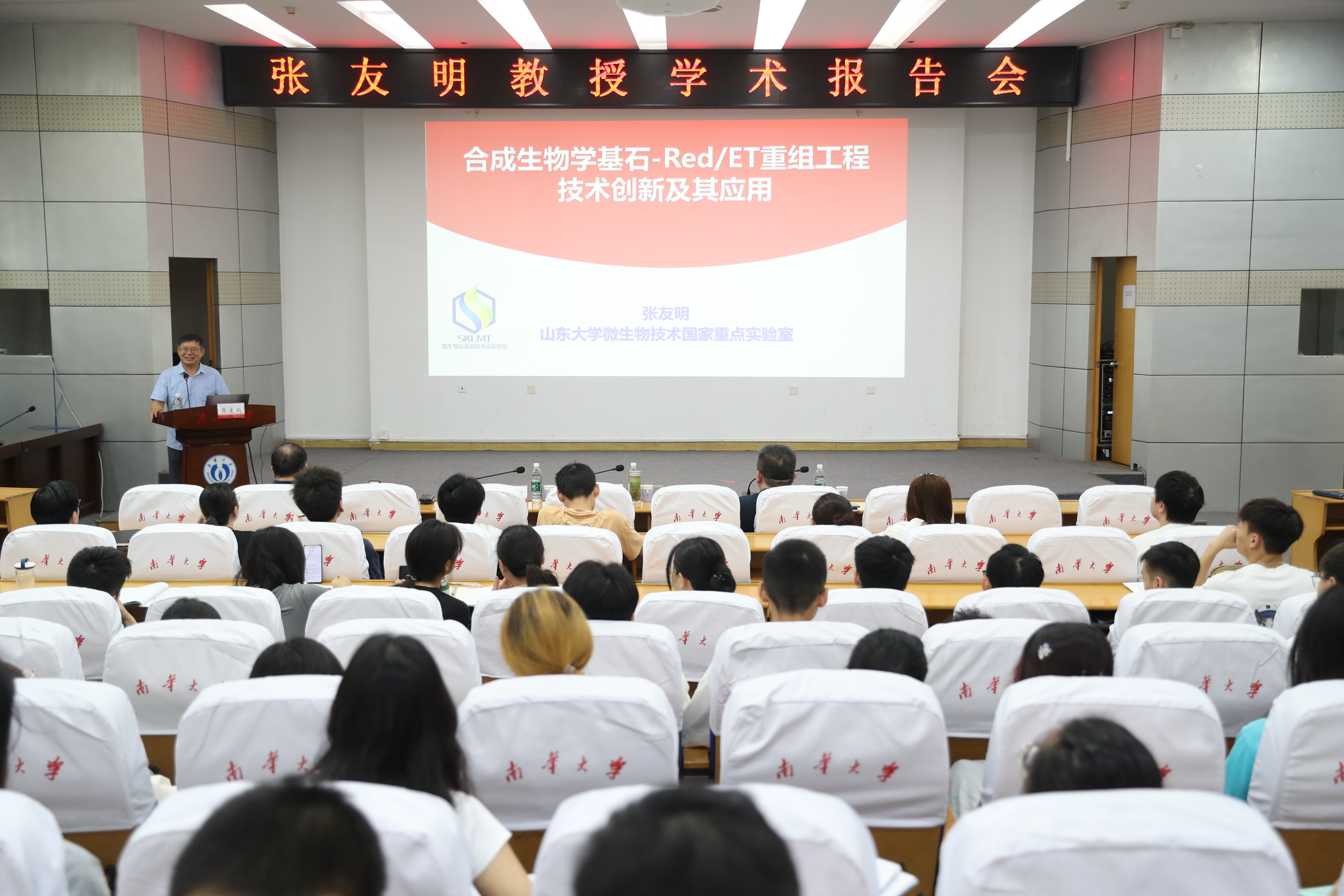 报告会上,张友明教授介绍了合成生物学发展历程及重要意义,详细分析了其发明的Red/ET重组工程技术基本原理和技术特点。他指出,Red/ET介导的同源重组技术和重组工程技术是基因组和大片段DNA改造和操纵的理想工具,是以解决瓶颈问题为导向的技术创新,解决了早期基因操纵领域面临的难题,在全球生物医药公司及分子生物学实验室得到了广泛运用。围绕Red/ET重组工程技术在微生物基因改造及微生物天然药物研发、活体生物治疗、人源化免疫球蛋白/抗体药物生产等方面的应用,张友明教授进行了全面的深入讲解。