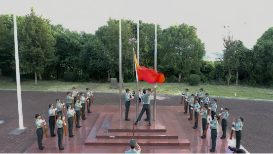 上午7时,旭日东升,晨光绚丽,气宇轩昂的国旗护卫队迈着坚定的步伐护送五星红旗走向升旗台,在雄壮庄严的国歌声中,4000余名师生庄严肃立,向国旗行注目礼,与冉冉升起的国旗一起迎接新学期,开启新篇章。