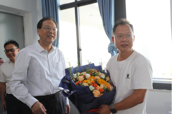 “目前带了多少学生,有多少学生参与你现在的项目?”在电气工程学院开关电源设计实验室,高山看望慰问了2024 年全国研究生电子设计竞赛优秀指导老师陈文光教授,亲切交谈间隙,高山为其送上鲜花与慰问金。随后,高山一行参观了开关电源设计实验室,详细了解了团队建设、科研方向与规划、特色成果及发展目标等具体情况。