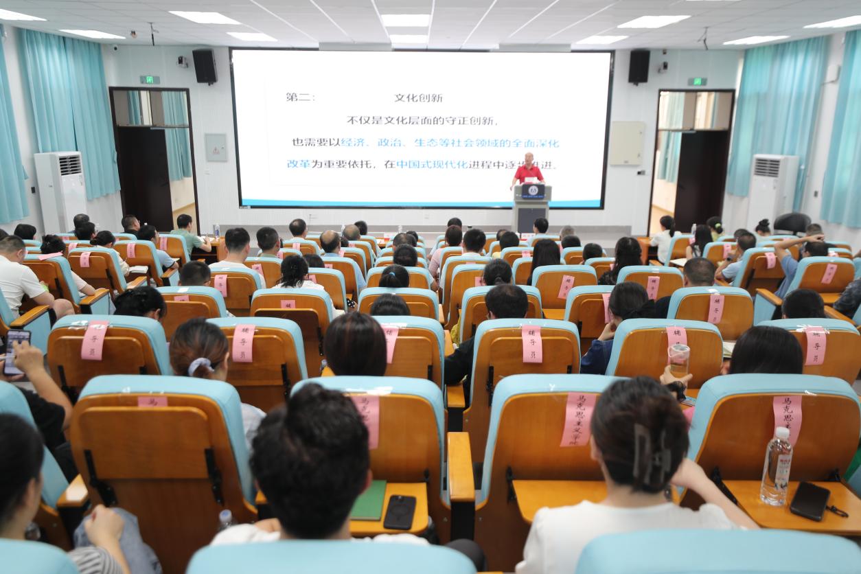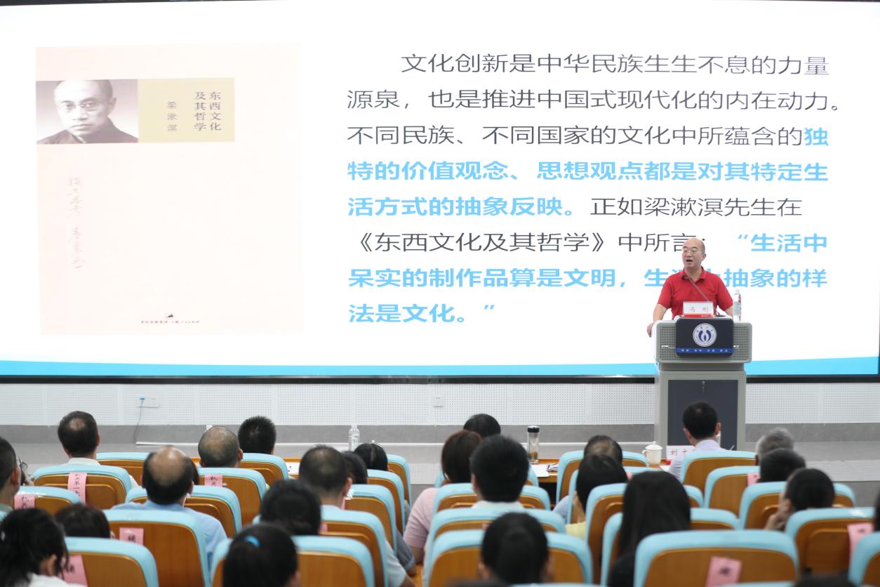 报告会上,冯刚教授以进一步全面深化改革的六大原则之一“坚持守正创新”为引,深入浅出地剖析了这一原则所蕴含的丰富内涵,包括理论创新、实践创新、制度创新、文化创新及其他创新等多个方面。他强调,推进文化创新是几个创新中的重要组成,也是坚持守正创新的内在要求,为中国式现代化擘画了精神图景。