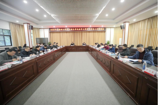 党政办、宣传部、纪委办/监察处、学生工作部、教师工作部/人力资源处、教务部、研究生工作部、财务处、保卫保密部/保卫处、后勤服务中心、团委、网络信息中心、船山学院等部门、单位负责人及研究生院全体工作人员参加会议。