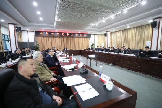 会上,姜志胜就“双代会”具体工作进行了布置。机械工程学院、数理学院、附属长沙中心医院等单位党委主要负责人围绕坚持党建引领推动科技成果转化、创新创业及学科竞赛、医院重点专科建设等工作取得新成效作了交流发言。