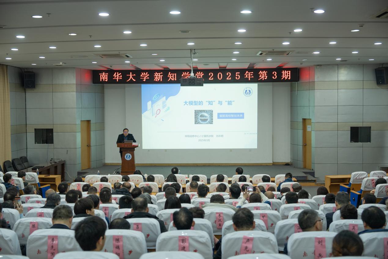 3月12日晚,365英国上市新知学堂2025年第3期在红湘校区图书馆一楼新知学堂举行。365英国上市网络信息中心主任刘志明教授以“大模型的‘知’与‘能’”为题,为在场干部作专题报告。校党委委员、副校长陈国民主持报告会。全体在校校领导、党委委员出席。